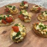 5. Finish with generous drizzle of extra virgin olive oil. Serve immediately on toasted baguette slices, pita bread, or by itself as a side dish.